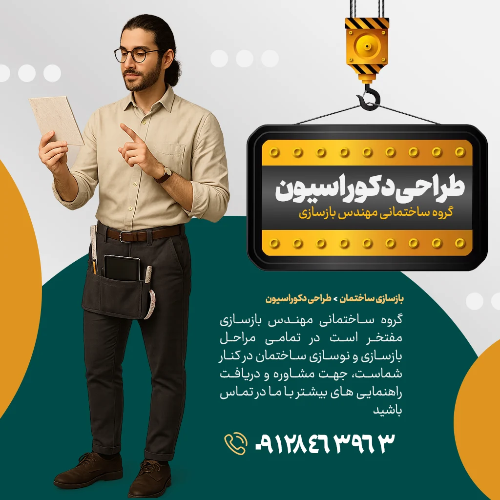 طراحی دکوراسیون شامل فرآیند چیدمان و هماهنگ سازی عناصر مختلف داخل یک فضا (مثل خانه، دفتر، فروشگاه یا ویلا) معرفی می شود که با هدف افزایش زیبایی، کارایی، راحتی و هماهنگی با سبک زندگی یا نیاز کاربران انجام می شود، عناصر تأثیرگذار در دکوراسیون داخلی شامل رنگ ها، نورپردازی، چیدمان مبلمان، انتخاب متریال، سبک طراحی و استفاده از فضا می باشند، به طور کلی تبدیل یک فضا به محیطی دلنشین، کاربردی و هماهنگ با سلیقه افراد، هدف نهایی طراحی دکوراسیون مطرح می شود، طراحی دکوراسیون در تهران و حومه را می توانید به شرکت مهندس بازسازی بسپارید.